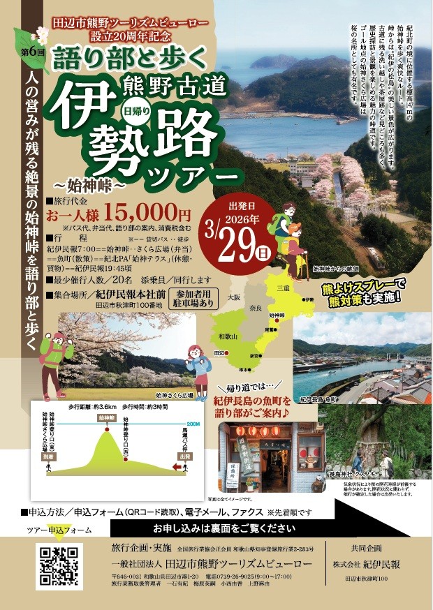 今年も紀伊民報との共同で「語り部と歩く熊野古道伊勢路ツアー」を企画しました。