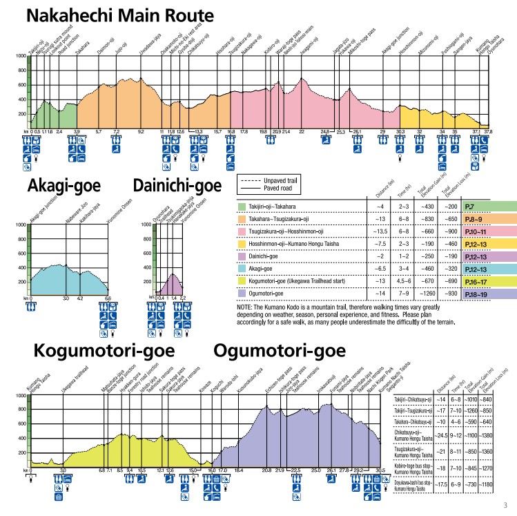 膳宿供应:中田边、大田边、泷尻、高原、近露、野中地区(继樱王子)、本宫(本宫村、汤之峰温泉、川汤温泉、渡濑温泉)、小口、那智山、胜浦。