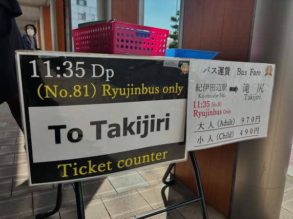 At Kii-Tanabe Station, there is usually a table for pre-purchase tickets to Takijiri at 6:16, 11:35, and 12:50.