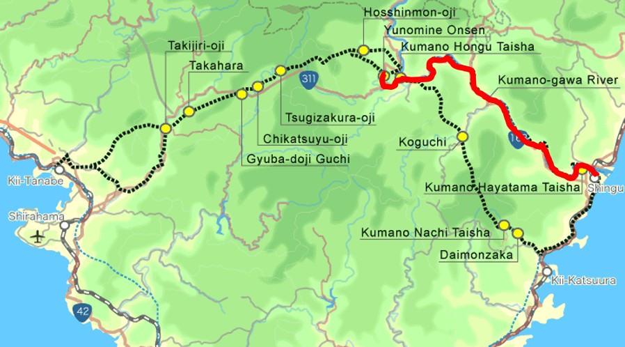 Hongu Taisha / Yunomine Onsen / Wataze Onsen / Kawayu Onsen → Shingu Station