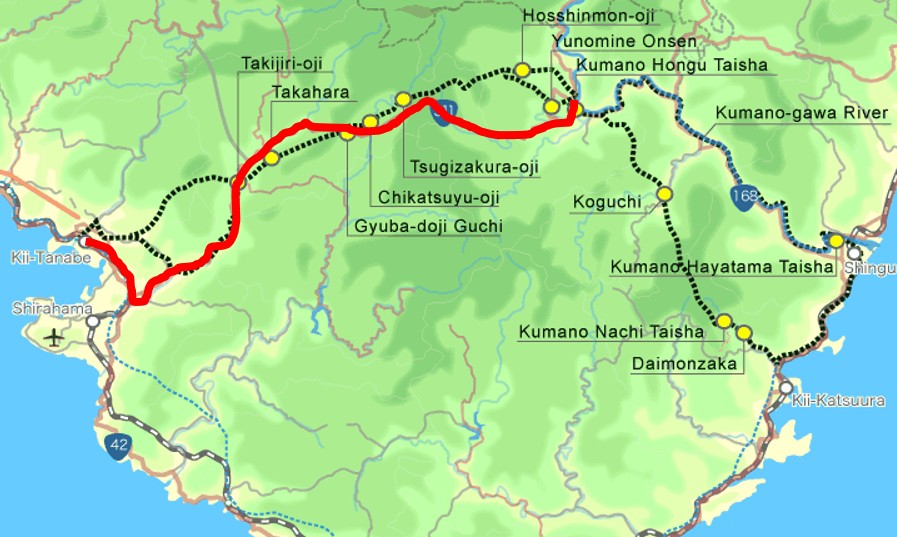 JR Kii-Tanabe Station to Kumano Hongu Taisha bus route