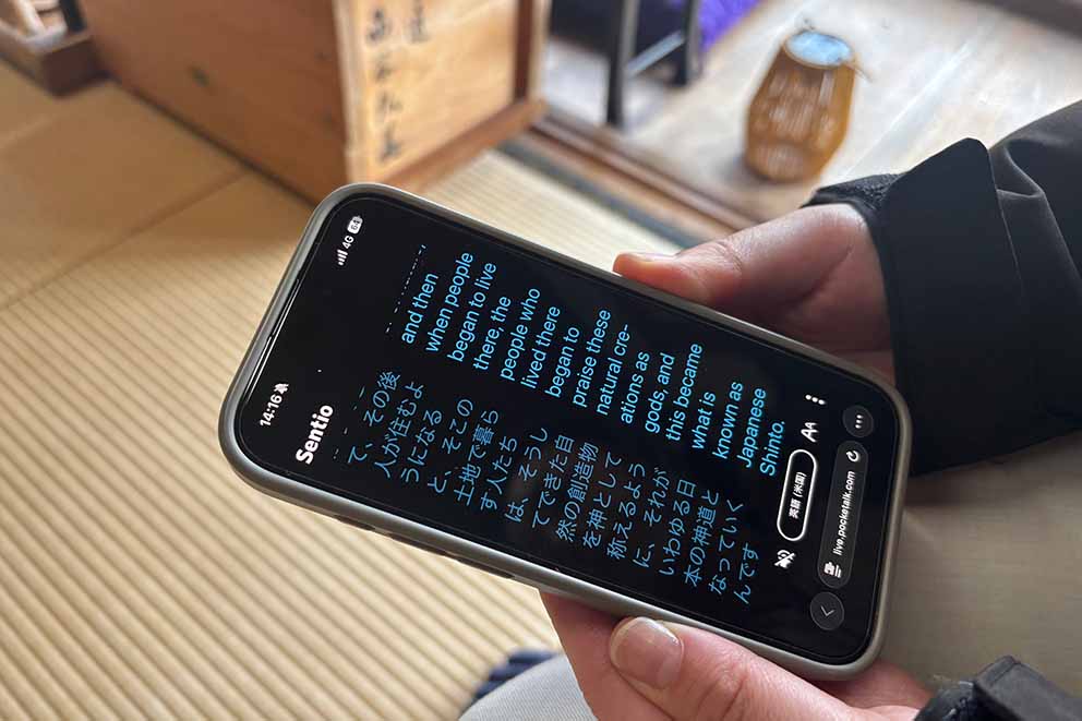 A translation app guests can download onto their smartphones is suggested at the start to help them follow the priest’s directions.