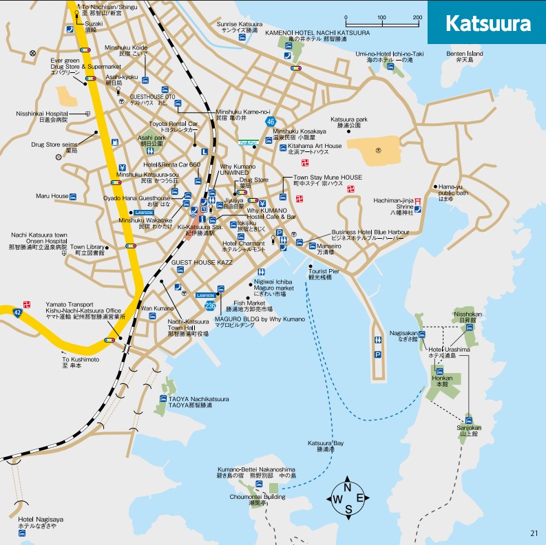 Most accommodations are within a few hundred meters of Kii-Katsuura Station.