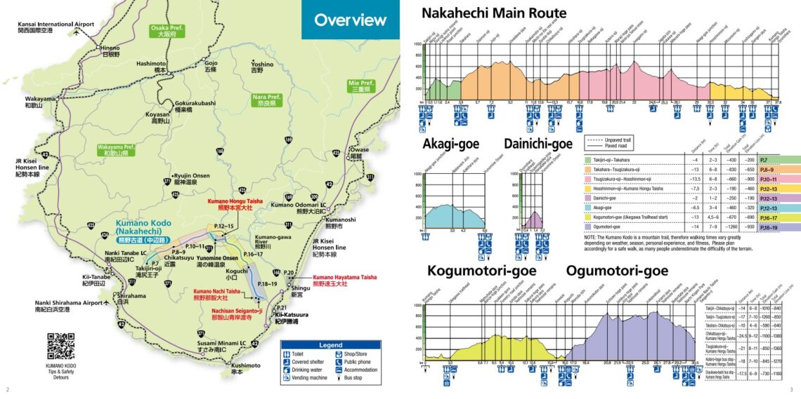 The Nakahechi Route is the main route that links the three Grand Shrines of Kumano. It has rich historical, cultural, and spiritual atmosphere. There are local busses that lead to the isolated villages where accommodations are located. The infrastructure — such as English signs, maps and luggage shuttle services — is developed.